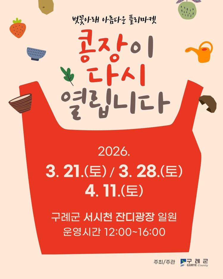 - 구례의 봄, 플리마켓 콩장과 함께 오는 21일 서시천서 재개장