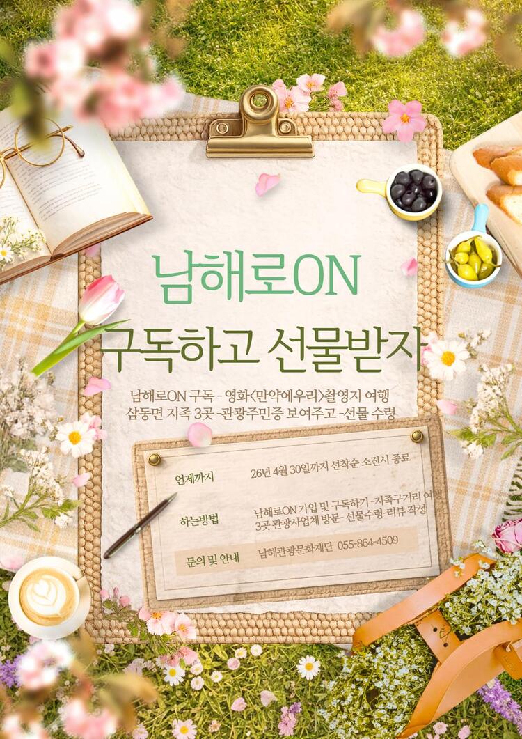 [이트레블뉴스=이형찬 기자] 남해관광문화재단이 운영하는 여행 구독 서비스 남해로ON이 오는 4월 30일까지 영화 만약에 우리 속 주요 배경지인 삼동면 지족구거리에서 구독자를 위한 특별 미션 이벤트를 개최한다. 이번 행사는 단순한 정보 전달을 넘어 영화 속 이야기가 실제 여행 경험으로 연결될 수 있도록 로컬 관광 콘텐츠를 강화하기 위해 마련됐다.